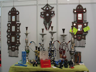 Man musste wirklich eine der seltenen ruhigen Minuten abwarten, damit man den Stand mal so fotografieren konnte Wasserpfeifen und originale antike "Feng Shui"-Gehänge waren einer der Renner am Stand vom Weltbasar.