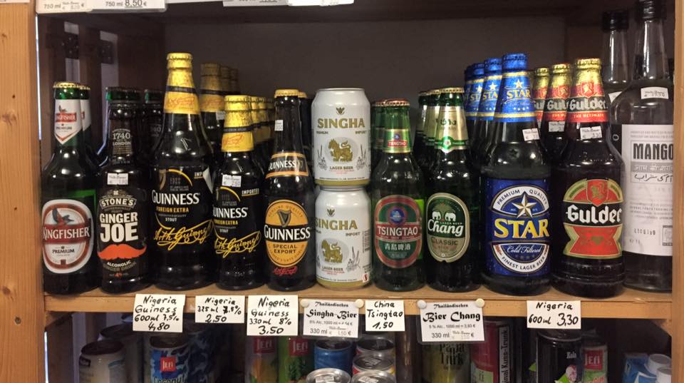 z.B. "Ginger Joe" - Ingwer Bier; verschiedene Sorten nigerianisches Guinness Bier, sowie nigerianisches "Star" und "Gulder" Bier!!